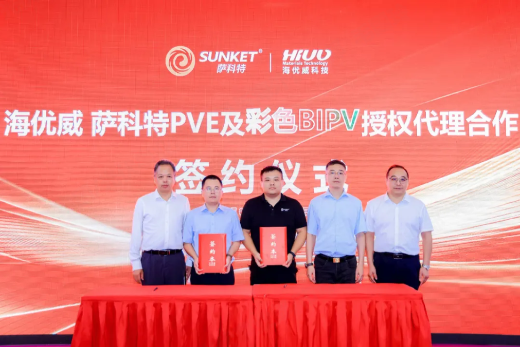 2025年8月6日,在“2025·光伏建筑一体化创新、零碳建筑与分布式光伏电站安全规范论坛”现场,上海海优威新材料股份有限公司(以下简称“海优威”)与无锡萨科特新能源科技有限公司(以下简称“萨科特”)正式签署PVE+彩色BIPV授权...